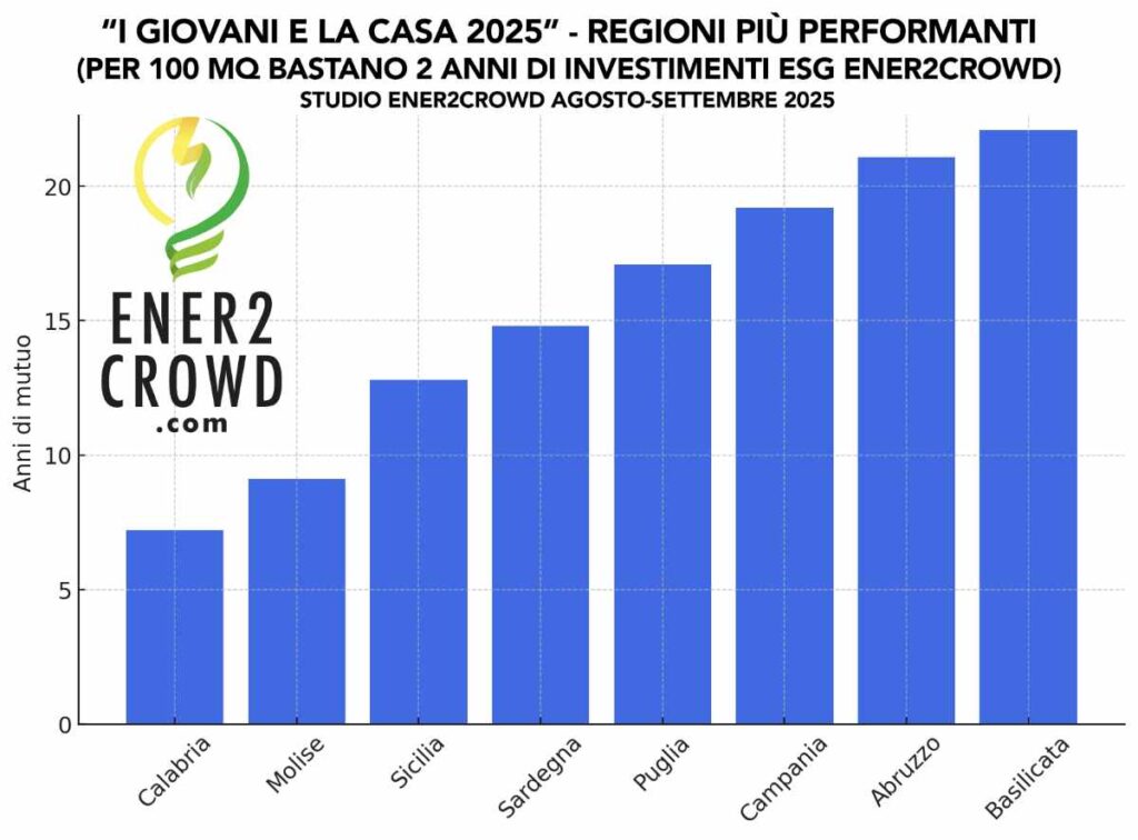 Lo studio individua 48 province in cui, dopo 2 anni di investimenti su Ener2Crowd, l’accesso al mutuo diventa sostenibile con una durata media di soli 18,2 anni.